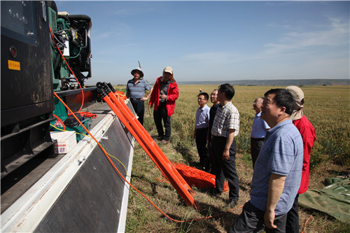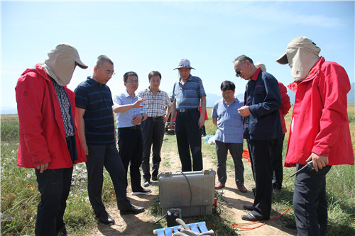 ? ? 5月23日上午,公司黨委書記、執行董事、總經理王新坪帶領班子成員及有關部門負責人,冒著高溫酷暑,前往“岡底斯構造帶關鍵地區深部地質調查大地電磁測深及CSAMT觀測項目”長安區魏寨模擬勘查實驗現場,看望慰問地調所三部物探隊員。