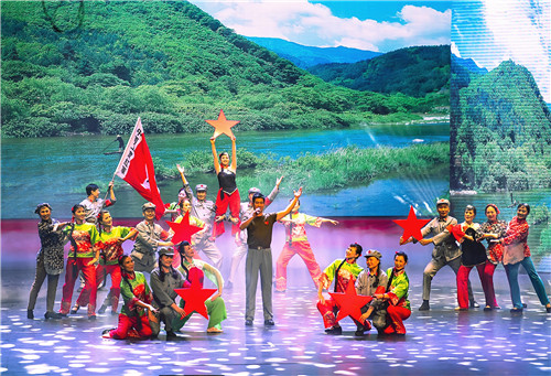 ? ? 9月24日晚,地礦集團(tuán)公司慶祝中華人民共和國成立70周年《與祖國同行——奮進(jìn)的地礦人》文藝晚會(huì)在西安人民劇院舉行。物化探隊(duì)選送的情景歌舞《紅星照我去戰(zhàn)斗》在舞臺(tái)上綻放異彩。