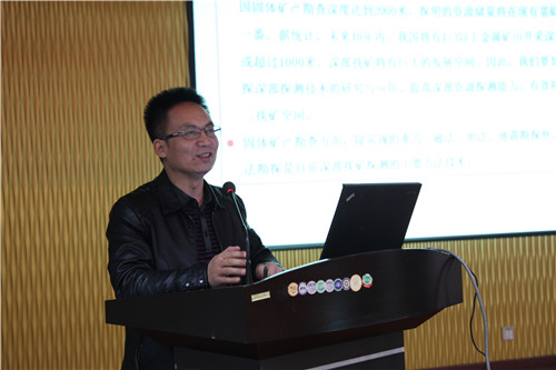 ? ? 物化探隊總工程師劉建利作了《大功率重疊場源張量CSAMT方法技術(shù)及應(yīng)用》的報告。