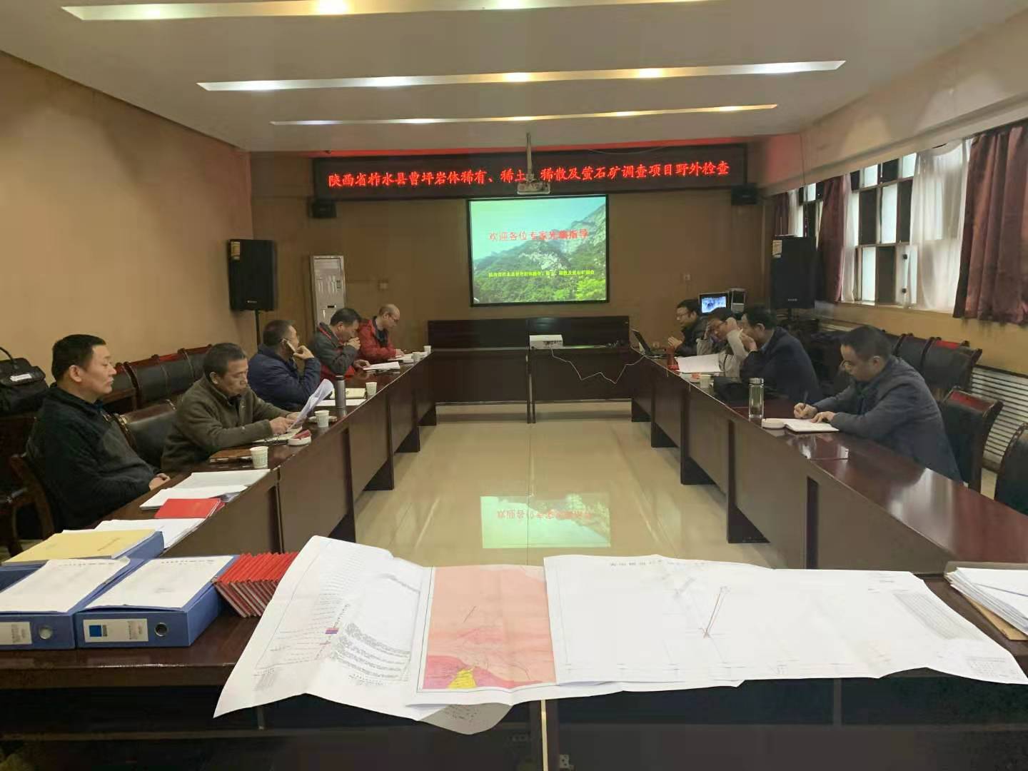? ? 2019年11月20日—26日,陜西省地質調查院、陜西地礦集團有限公司及相關市、縣國土資源局組織專家對陜西地礦物化探隊有限公司承擔的《陜西省鳳縣黃牛鋪九子溝一帶稀土礦地質調查》和《陜西省柞水縣槽坪巖體稀有、稀土、稀散及螢石礦調查》兩個地勘基金項目進行了中期檢查。