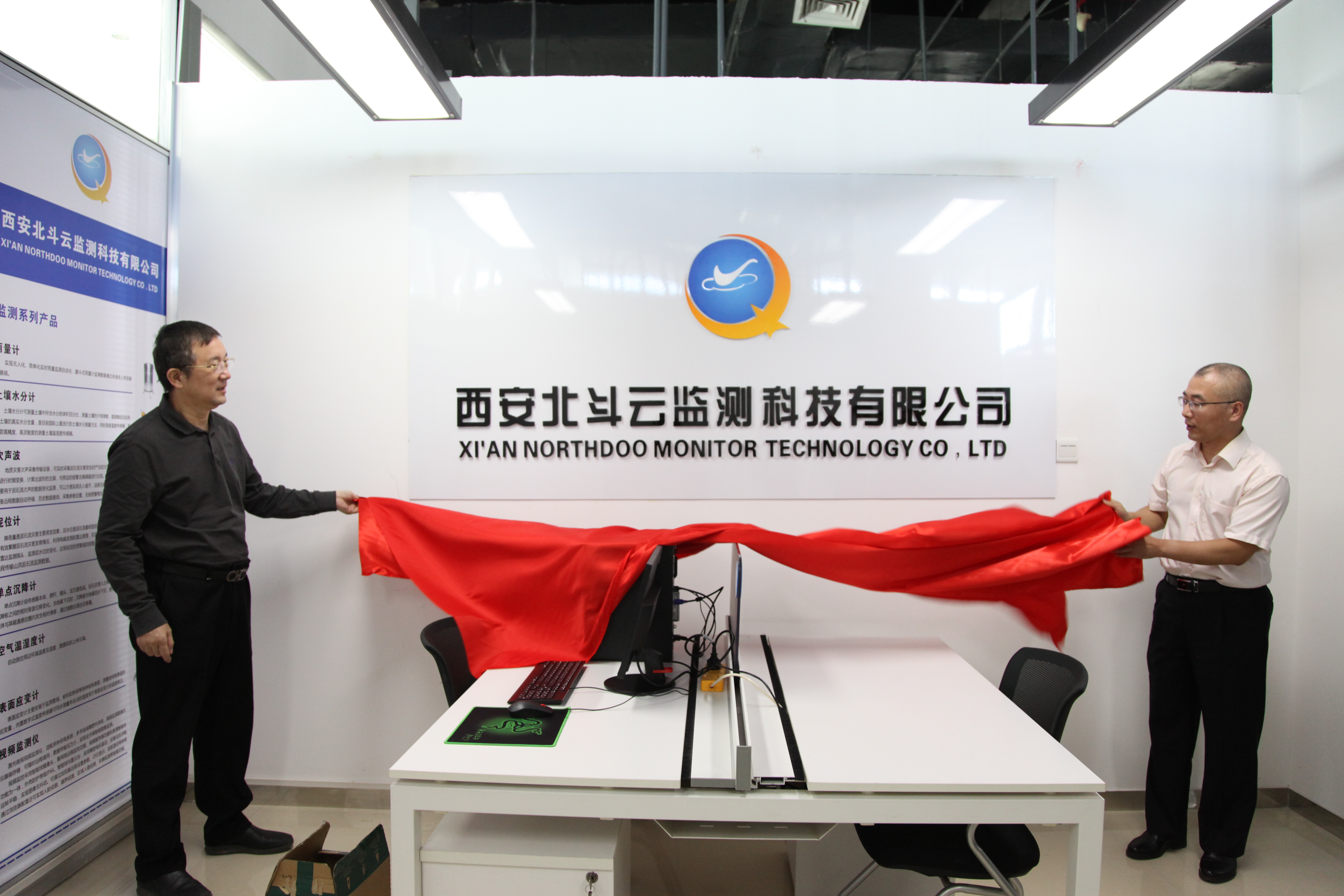 ? ? 5月10日,“西安北斗云監測科技有限公司”揭牌儀式,在西安國際港務區陜西物聯網產業園舉行。物化探隊班子成員、深圳北斗云信息技術有限公司負責人,以及相關部門負責人參加揭牌儀式。物化探隊黨委書記、執行董事、總經理王新坪主持揭牌儀式。