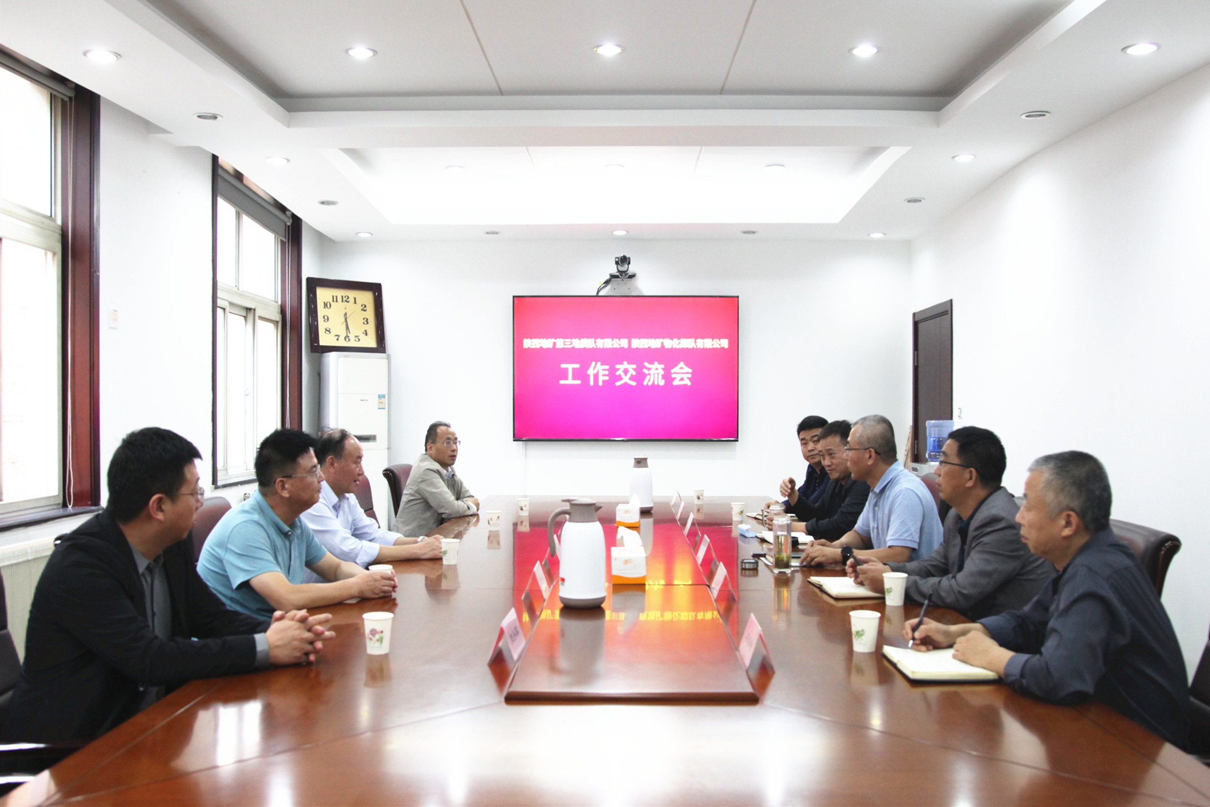 ? ? 9月25日下午,陜西地礦第三地質隊有限公司黨委書記、執行董事、總經理李煥林,副總經理賀永平、李亞成,紀委書記李軍政,總會計師、辦公室主任史小軍一行,來物化探隊有限公司調研交流工作。公司領導班子成員及相關部門負責人與李煥林一行進行了親切座談。