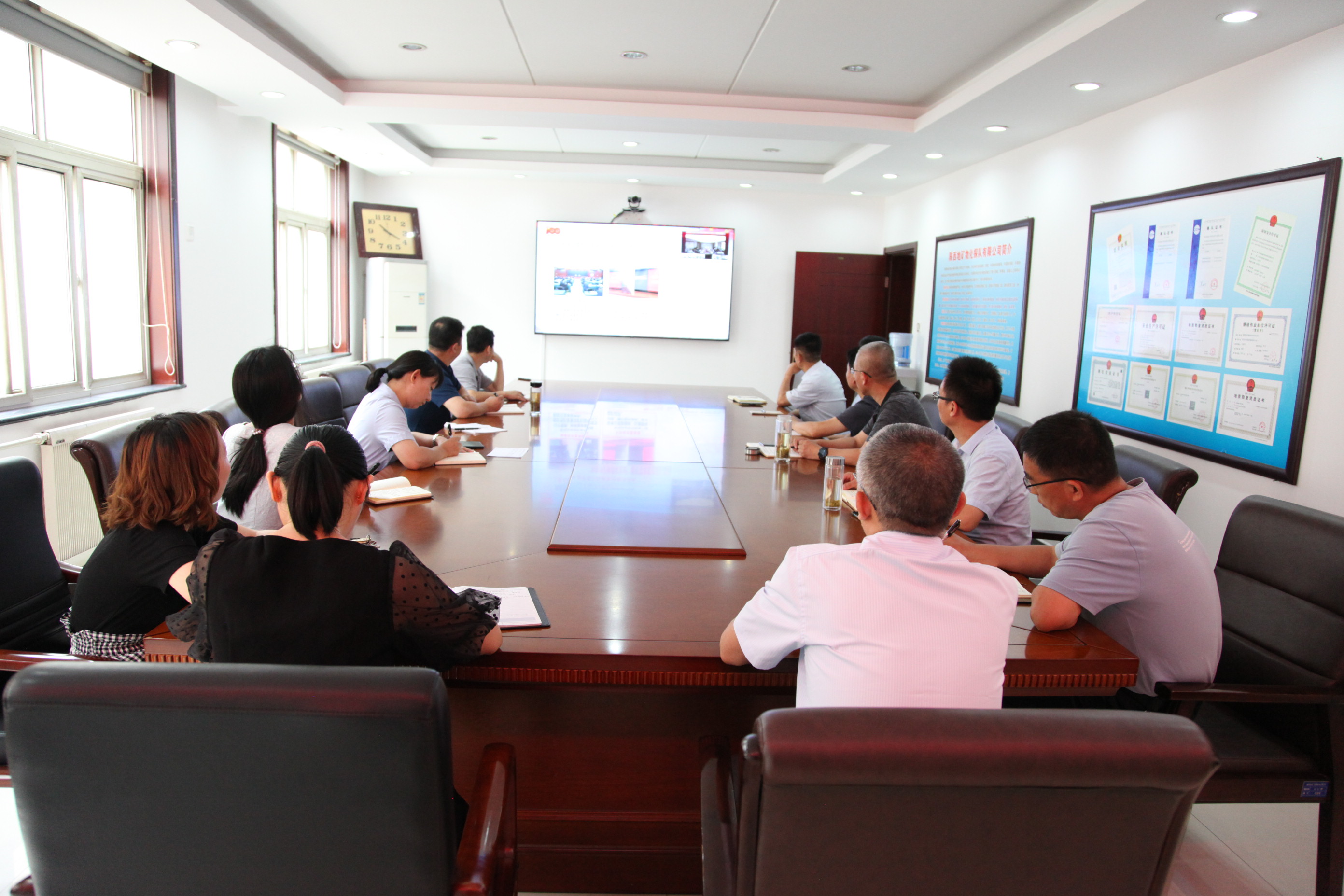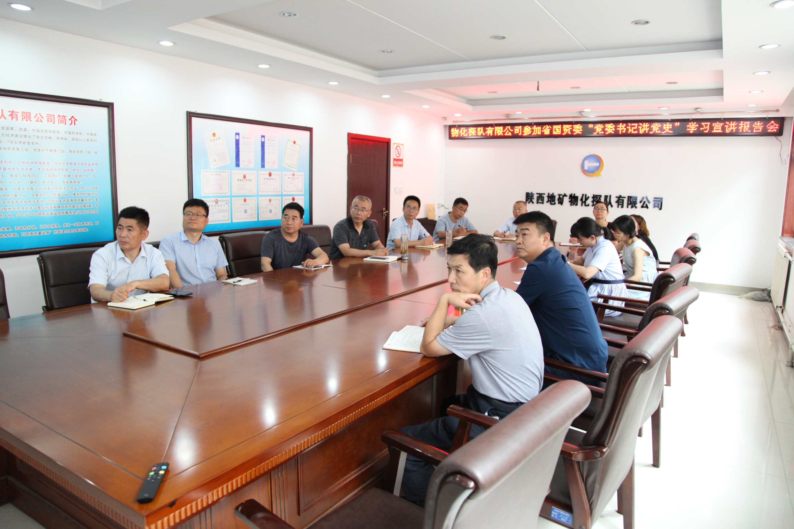? ? 6月23日上午,物化探隊有限公司班子成員和支部書記參加了省國資委系統“黨委書記講百年黨史”系列黨課宣講報告會(第十講)。省國資委黨委書記、黨史學習教育領導小組組長劉斌以《扛起國有企業時代責任 致敬中國共產黨成立100周年》為題,為系統黨員干部“黨委書記講百年黨史”系列黨課活動畫上了圓滿句號。報告會以視頻會形式在二樓會議室召開。