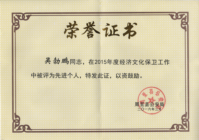 ? ? 物化探隊(duì)周至管理處,以周至縣積極開(kāi)展創(chuàng)建“平安單位”活動(dòng)為契機(jī),以“保障單位安全,維護(hù)內(nèi)部穩(wěn)定,促進(jìn)社會(huì)和諧發(fā)展”為目標(biāo),持續(xù)推進(jìn)內(nèi)部治安防控體系建設(shè),為經(jīng)濟(jì)文化保衛(wèi)工作做出了貢獻(xiàn)。在3月23日周至縣公安局召開(kāi)的《2015年度經(jīng)文保工作總結(jié)表彰暨2016年工作安排部署會(huì)議》上,吳勃鵬同志被周至縣公安局評(píng)為2015年度經(jīng)文保工作先進(jìn)個(gè)人。
