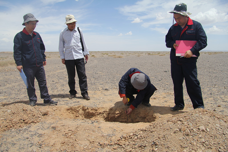? ? 該工作區沙山高陡,正值酷暑季節,地表溫度高達五十多攝氏度,給野外施工人員帶來極大困難。檢查組仔細查看了項目開工資料,了解了項目工區現場情況、生產生活條件及安全保障措施等方面情況。