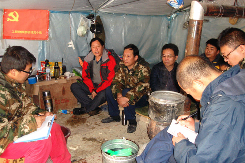 ??? 檢查組在對野外項目慰問檢查過程中,每到一處,帶隊領導向節日期間仍奮戰在野外作業一線的全體職工送去了節日的慰問和祝福。