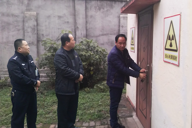 ? ? 檢查過程中,檢查組聽取了周至管理處負責人有關放射源庫安全管理、防恐、保衛工作情況的匯報,仔細查閱了放射源庫安全管理相關資料記錄臺賬,并對放射源庫進行了認真地現場檢查。