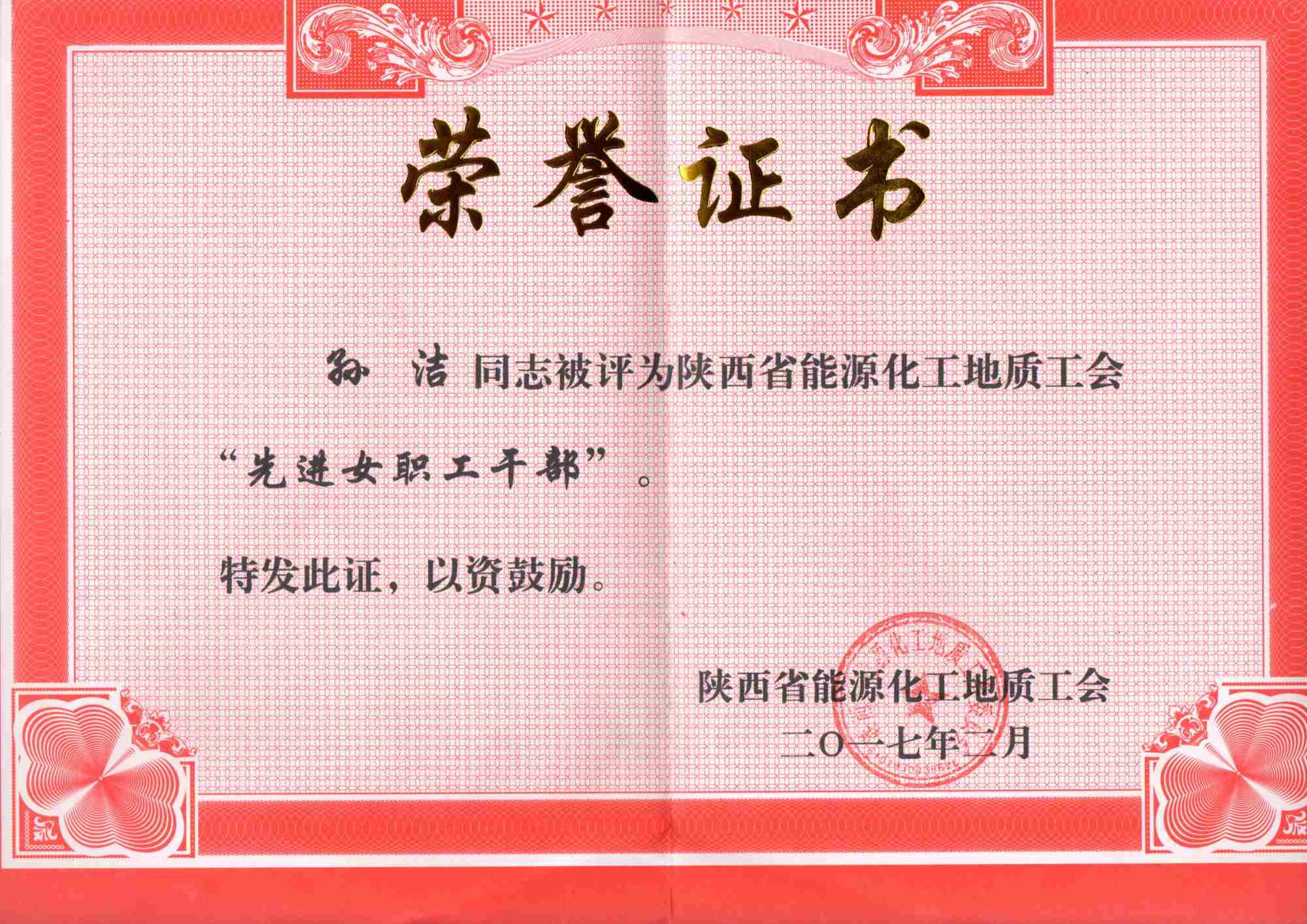 陳娜 孫潔受省能源化工地質工會表彰