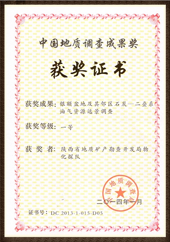 物化探分公司“銀額物化探”項目榮獲中國地質調查成果一等獎