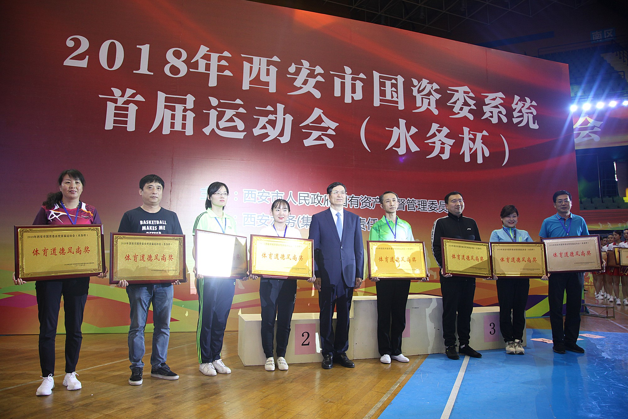 ? ? 2018年9月19,西安市國資委系統(tǒng)首屆運(yùn)動(dòng)會(huì)在西安市運(yùn)動(dòng)公園體育館如期舉行。我隊(duì)按組委會(huì)要求派出了包含旗手在內(nèi)的21人方陣出席了開幕式。比賽經(jīng)過3天激烈的角逐,于21日?qǐng)A滿閉幕。閉幕式上舉行了頒獎(jiǎng)儀式,我隊(duì)喜獲“體育道德風(fēng)尚獎(jiǎng)”。?
